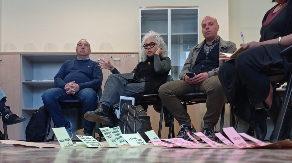Ad avere uno sguardo sovrastante, c’erano tutte le rappresentanze per i diritti: lavoratrici e lavoratori autonomi, con partite iva vere e false, o un po’ vere un po’ false; ibridi tra lavoro dipendente e desideri di autocostruzione; rappresentanti delle istituzioni per la Circoscrizione 1, persone in disoccupazione e in trasformazione; attiviste per il contrasto alla disuguaglianza sociale che passa dal reddito, ultimo grande tabù.